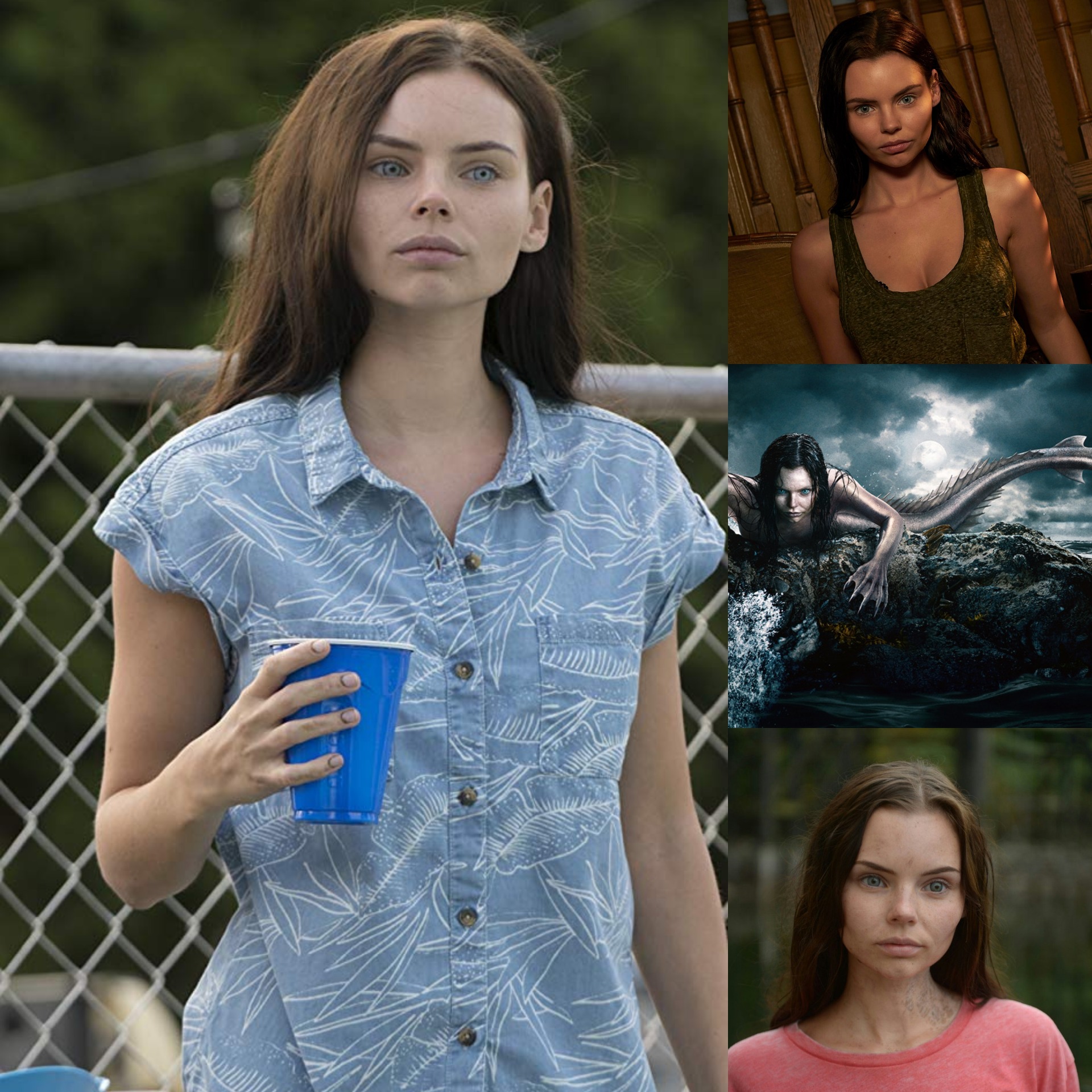 Charakteristika: Velmi drobounká štíhlá malá dívenka s nelidsky modrými oči. Pohled má většinou nečitelný plný nevinnosti a okouzlení pro obyčejného smrtelníka. Je velmi tichá a ne moc společenská, jelikož moc nikomu nedůvěřuje. Komu by také mohla, když ani pomalu netuší, co je to důvěra na souši. Snaží se držet dál, ovšem to se ne vždy podaří. Řeč má velmi omezenou a tak když se ocitne s někým v konverzaci, odpovídá pouze na to nejdůležitější. Nikdy nechce být středem pozornosti, jak by také mohla. Je velmi obtížné se s ní většinou dát do řeči a nějak navázat něco jako přátelství. I přes to všechno je velice inteligentní, jak si ani nedokážeme představit. Učí se ve všem hrozně rychle. Ani na síle nepostrádá. I na to jak je drobounká, váží neskutečných 90 kil. Nikdo by to neřekl, podle toho, jak hubená a drobounká je.
